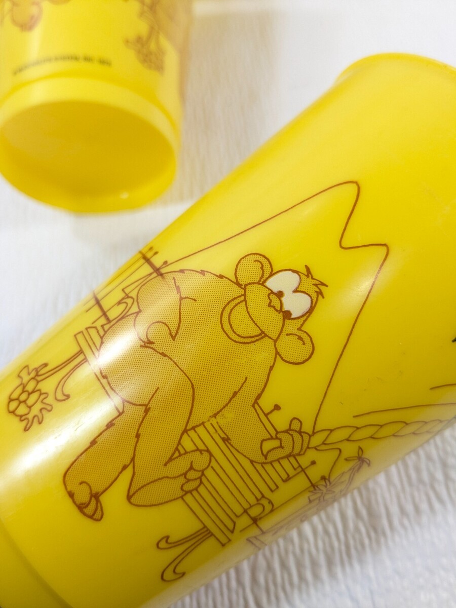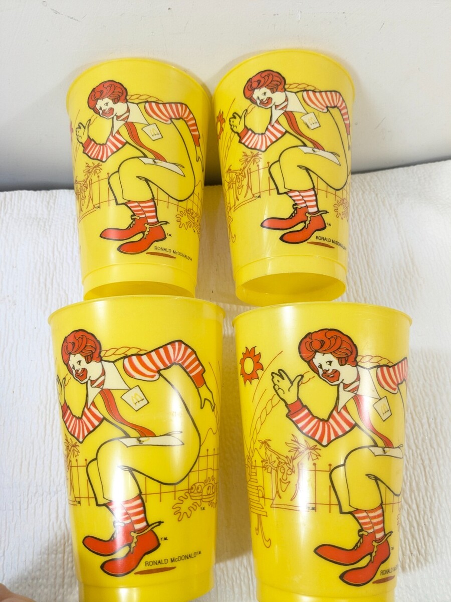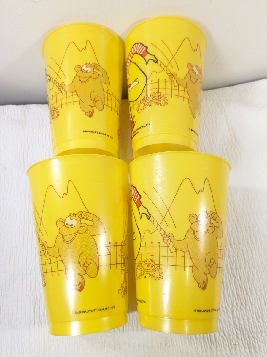 Vintage McDonald's x4 Ronald McDonald monkeys jump rope yellow plastic cups 1978