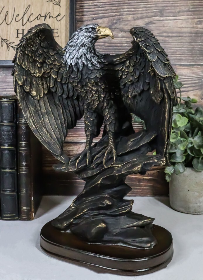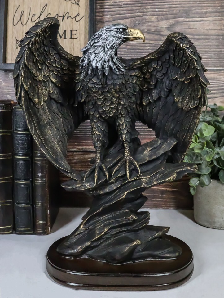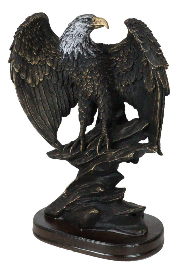 ? Upheld for generations as the image of freedom, the American Bald Eagle comes to life in this impressive, finely detailed statue. Add style and patriotism to the table, bookshelf or desk with this unique sculpture.