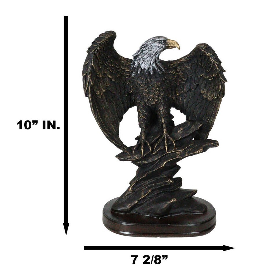 American Patriotic Large Bald Eagle Perched On Rocky Cliff Resin Figurine 10"H