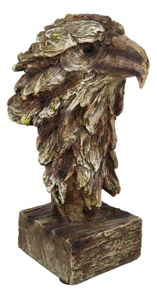 Faux Wood Carving Resin Rustic Wildlife American Bald Eagle Head Bust Figurine
