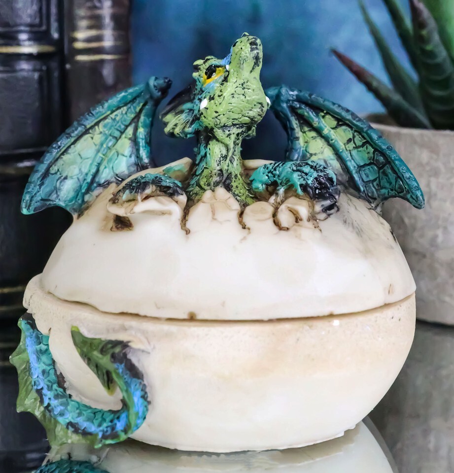Earth Gaia Dragon Hatchling Breaking Out Of Egg Shell Figurine Jewelry Box Decor
