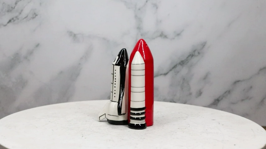 ? This Space Shuttle Salt pepper shakers set is made of high quality glossy ceramic, hand painted and polished individually.