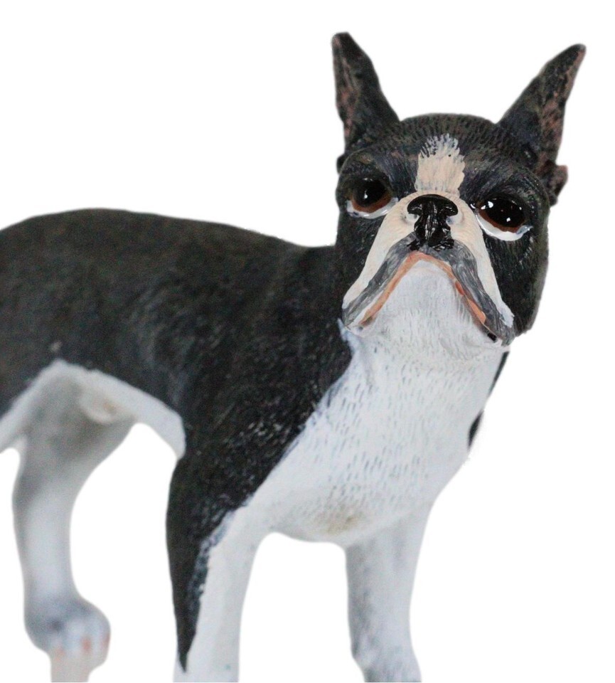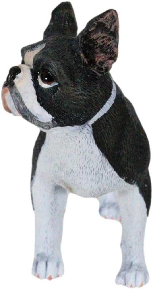 Ebros Realistic Miniature Boston Terrier Puppy Dog With Faint Red Face Figurine