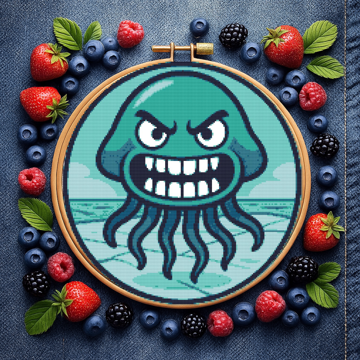 Octopus in winter - Cross-stitch pattern PDF - Instant download