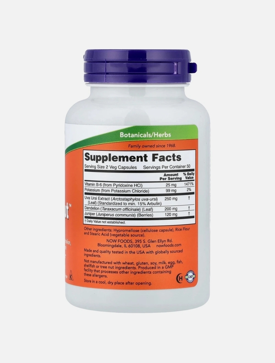 Fluid Balance With Standardized Uva Ursi, Dandelion, Potassium, Vitamin B-6, and More! Supports a Healthy Urinary Tract Non-GMO A Dietary Supplement Vegetarian/Vegan Kosher Botanicals/Herbs Family Owned Since 1968 Halal GMP Quality Assured NOW Water Out? is a blend of complementary herbs and nutrients formulated to support healthy urinary tract function and proper bodily fluid balance. Water Out? features dandelion, which has been traditionally used to support the maintenance of water equilibrium, as well as uva ursi and juniper, which have been used historically by herbalists to support a healthy urinary tract. In combination with the nutritional components vitamin B-6 and potassium, Water Out? helps support proper urinary tract function.