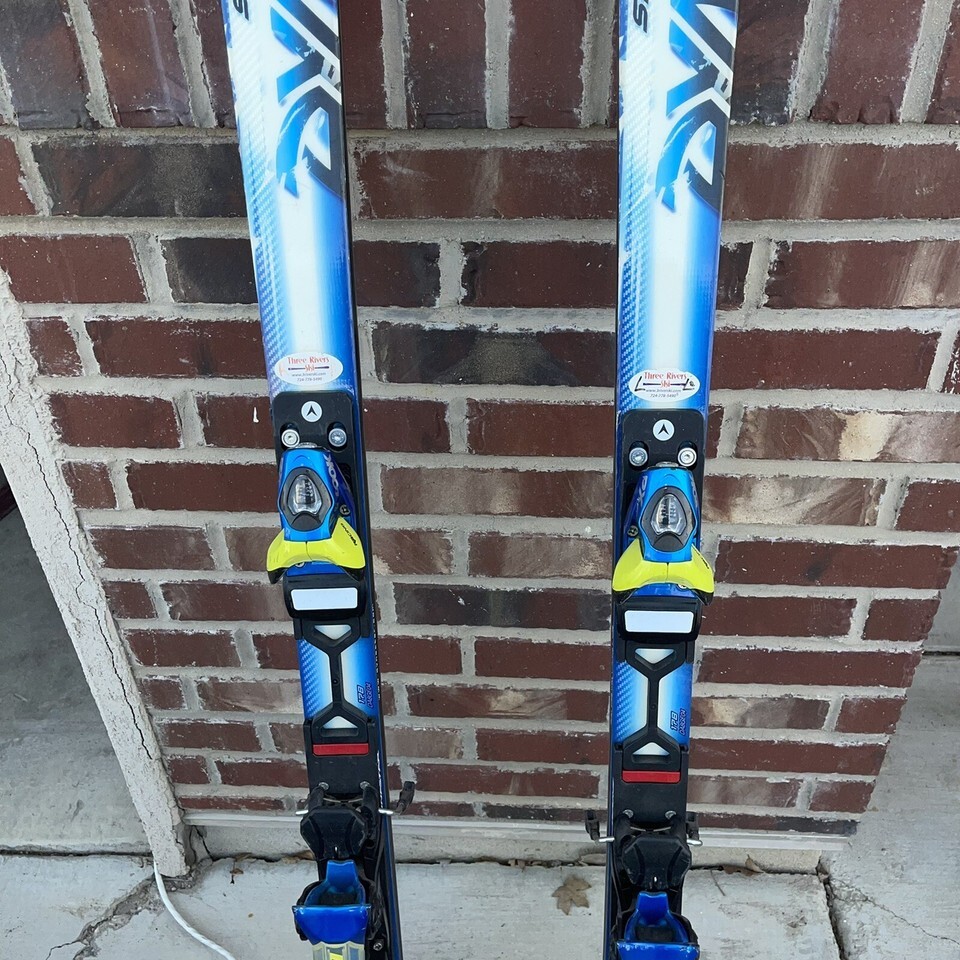 The skis are in good condition. They have some scratch, cuts and a chips (see picture). They have been sitting for a season and next to be sharpened and waxed. Pictures are of the actual item for sale and part of the description. Noted shipping price good only to continental USA