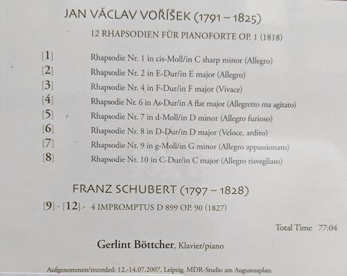 Rhapsodies / Impromptus [Audio CD] Jan Vaclav Vorisek; Franz Schubert and Gerlin