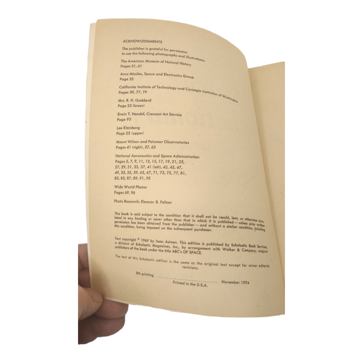 Vintage Space Dictionary by Isaac Asimov (Paperback, 1974, Scolastic). Pre-owned in Acceptable Condition. Some bending marks at the edges. Other wear from age and storage. No ripped or written on pages. Has a couple bend marks on a couple pages on the edges. Light yellowing to pages from age. See all photos for details and condition. Will ship USPS Media Mail.