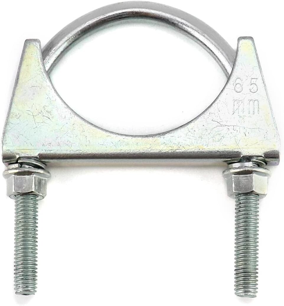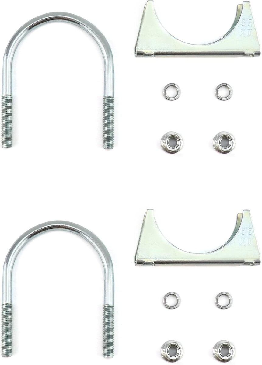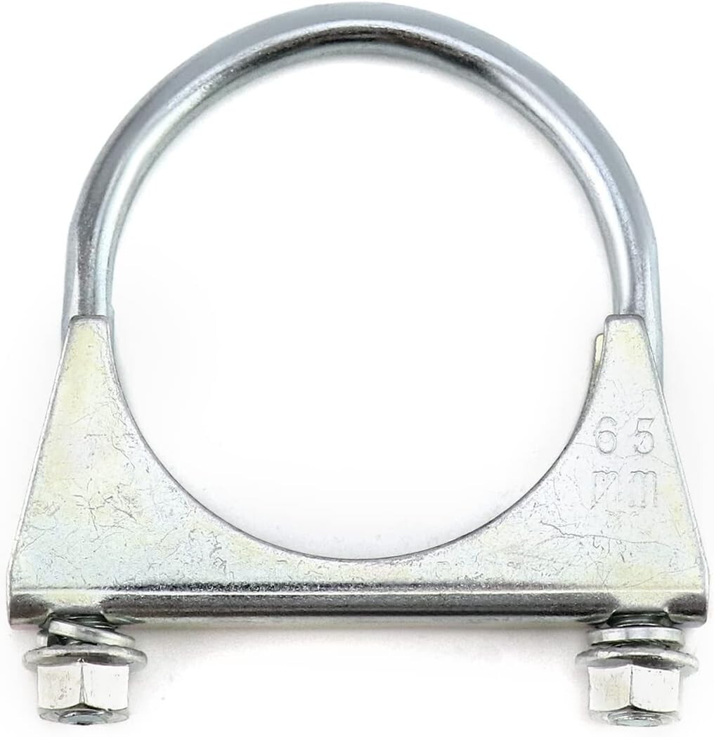ID, fits 2-1/2 in. OD pipe, 2 piece universal muffler tip exhaust hook U-Bolt mild steel clips.