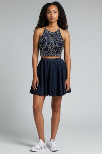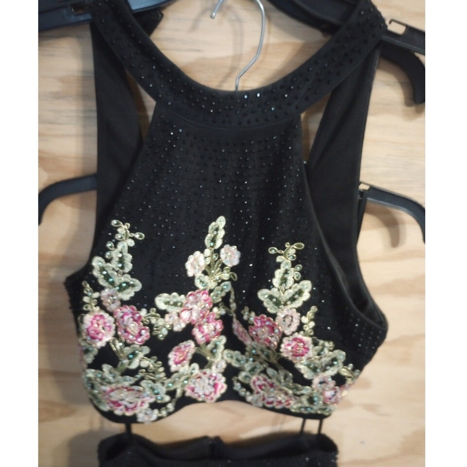 Prom/Formal 2 Piece Outfit Bedad Floral Elegant Halter Top 9 Juniors