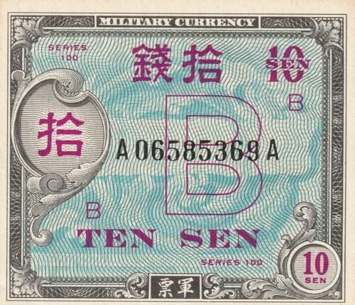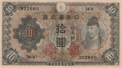 1945 Japan 10 Yen, Fine (F), Pick#77a (141x81)