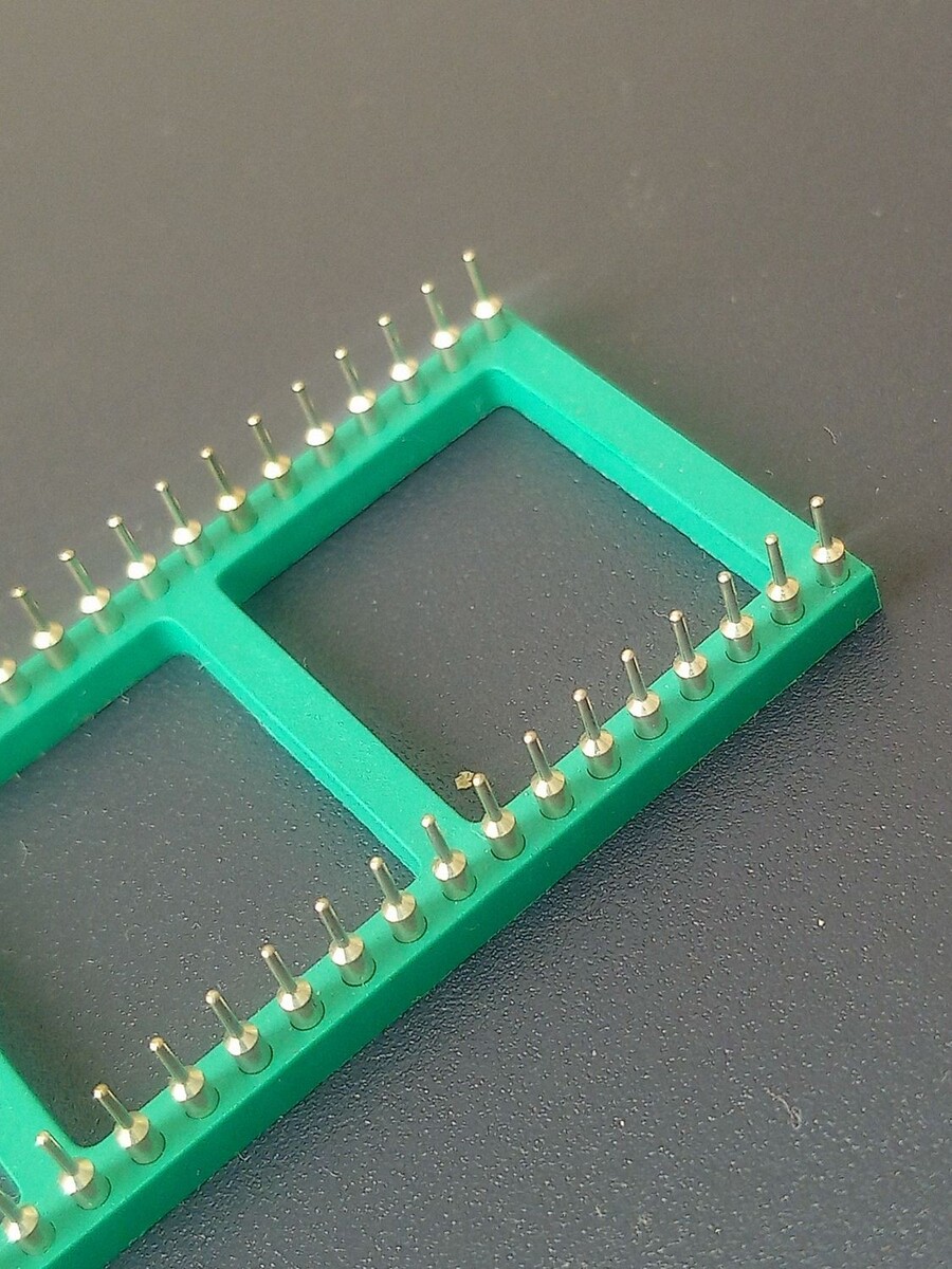 This is a high-quality, green plastic 64-pin Dual In-line Package (DIP) socket, used in 16-bit computers using Motorola MC68000 CPUs, available for your restoration project, spare parts, as a replacement or new projects.