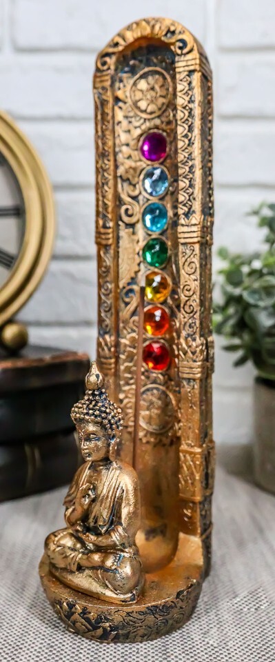 Ebros Colorful 7 Chakra Zone Colors Meditating Buddha Monk Incense Burner Figurine