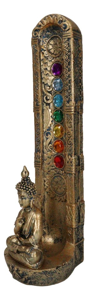 ? This Meditating Buddha Incense Burner With Chakra Zone Colors Beads is made of polyresin, hand painted and polished individually.