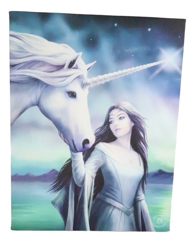Ebros Anne Stokes North Star Witch Unicorn Wooden Framed Picture Wall Decor