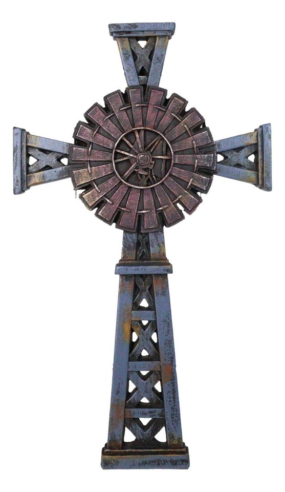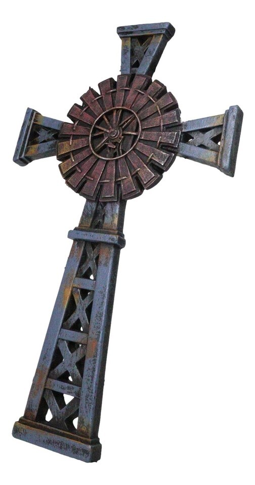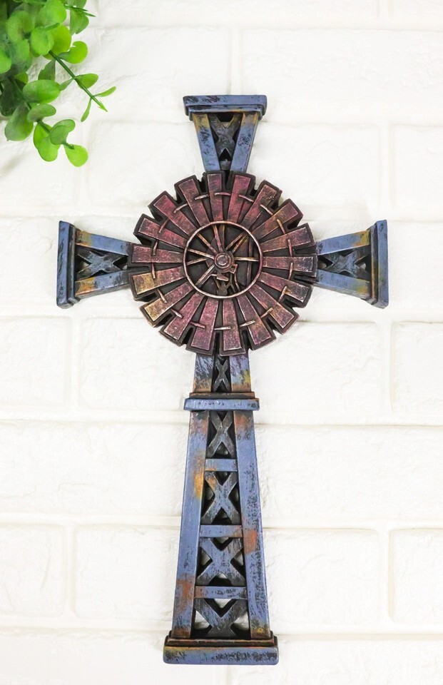 Country Western Rustic Windmill Towers Decorative Wall Cross Figurine