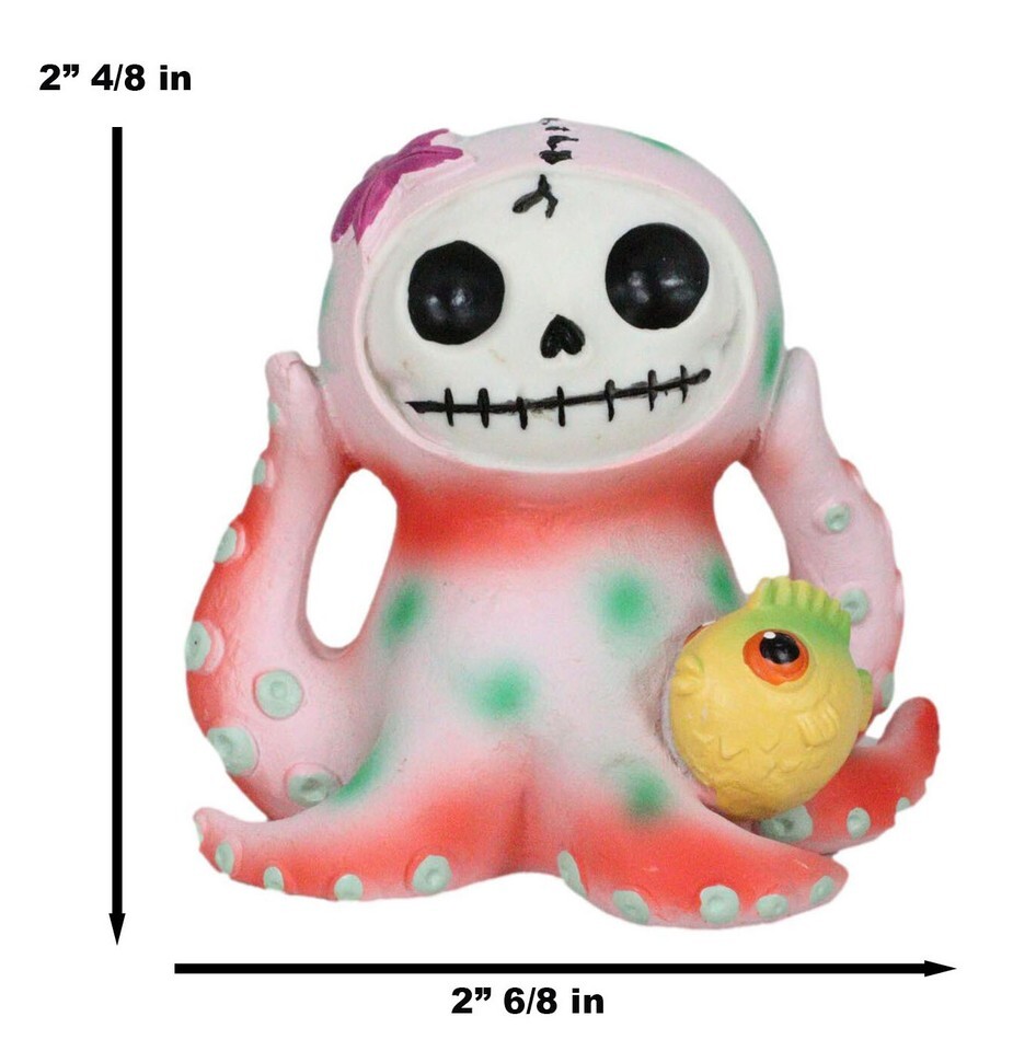 ? Furrybones Octopee is a resin figurine featuring our signature skeleton dressed up as a super cute octopus with a friendly little puffer fish friend.