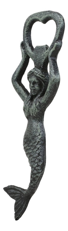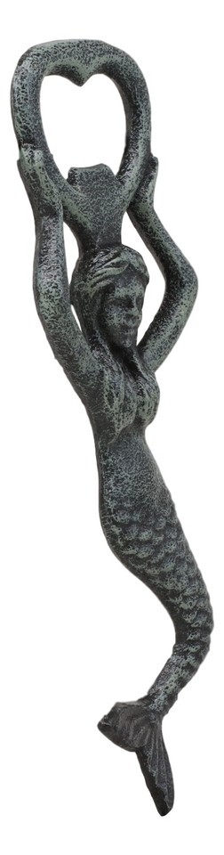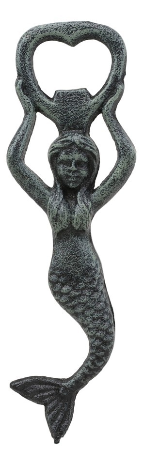 This Nautical Mermaid Bottle Opener is made of heavy duty cast iron, hand painted and polished in rustic verdigris finish. Color Tone may vary slightly from pictures.