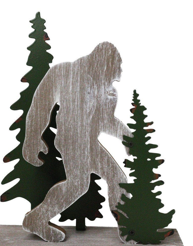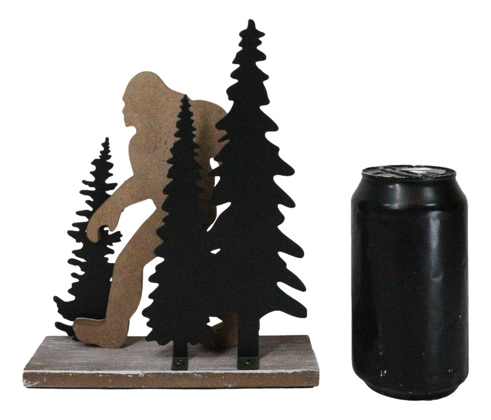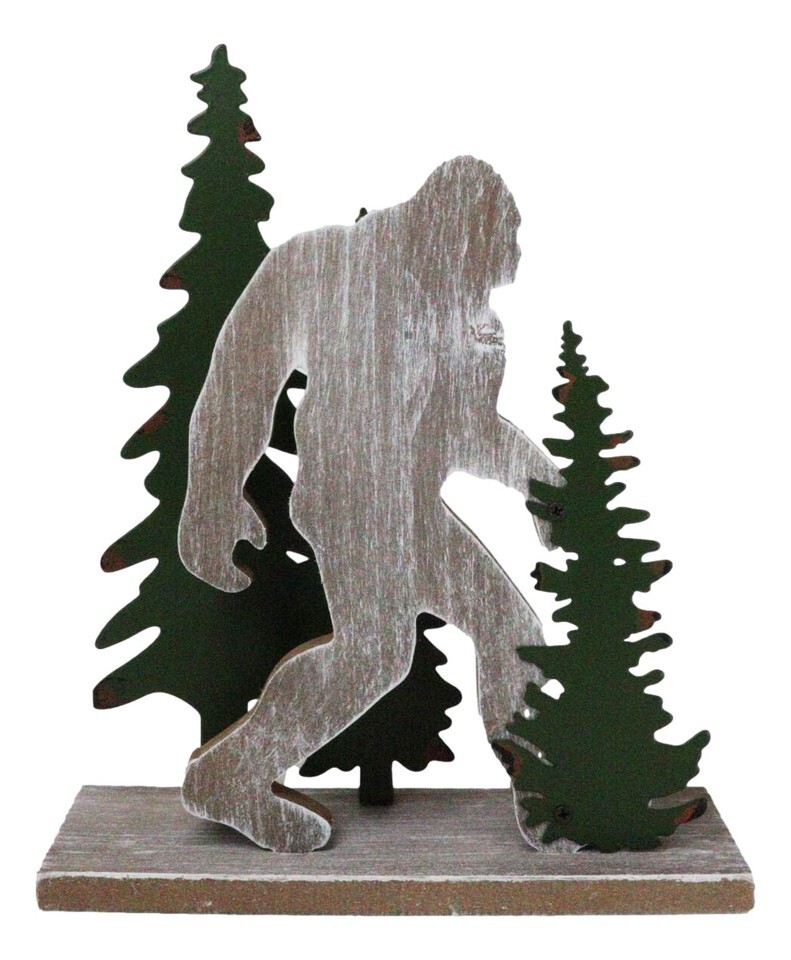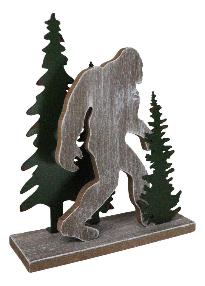 ? This Bigfoot By Pine Trees Forest Desktop Figurine is made of MDF wood, hand painted and polished individually.