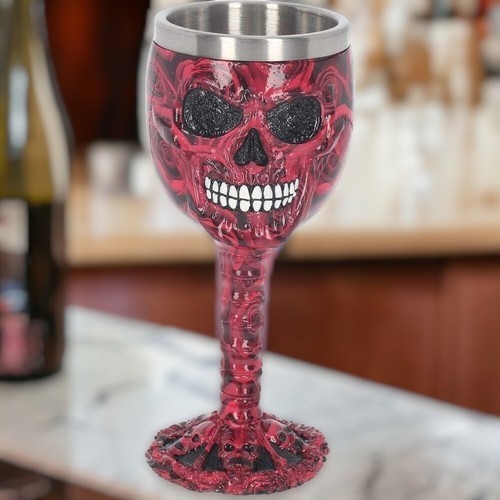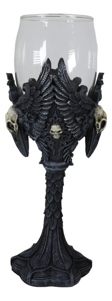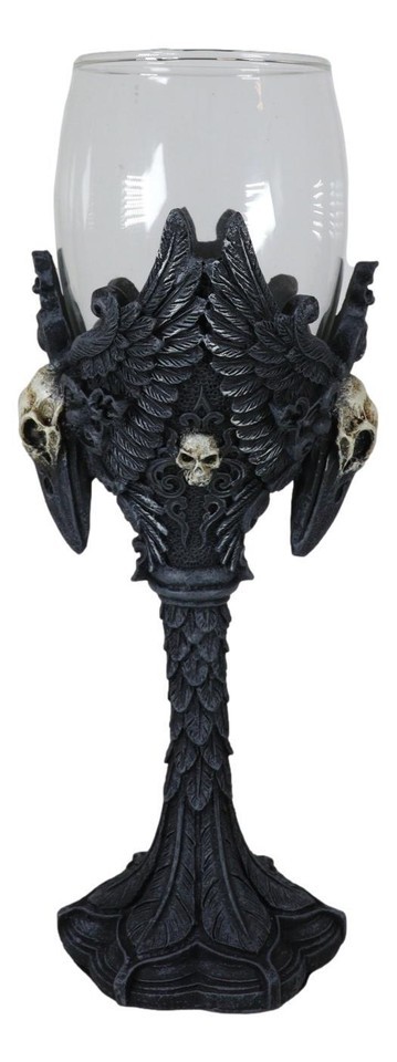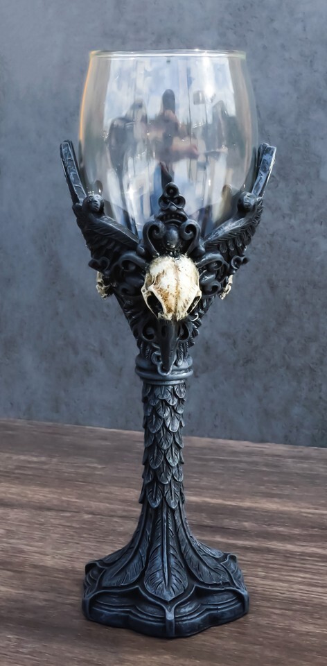 Blood Moon Gothic Dark Alchemy Raven Crow And Skulls Glass Wine Goblet Chalice