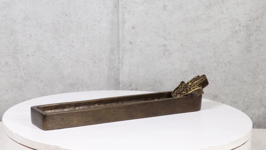 ? This Hamsa incense holder is a symbol of protection from the evil eye, representing the hand of God, believed to promote health, happiness, good luck and fortune. Hand painted in copper color, burning incense on this dish brings the spiritual significance of the Hamsa in aesthetic style.