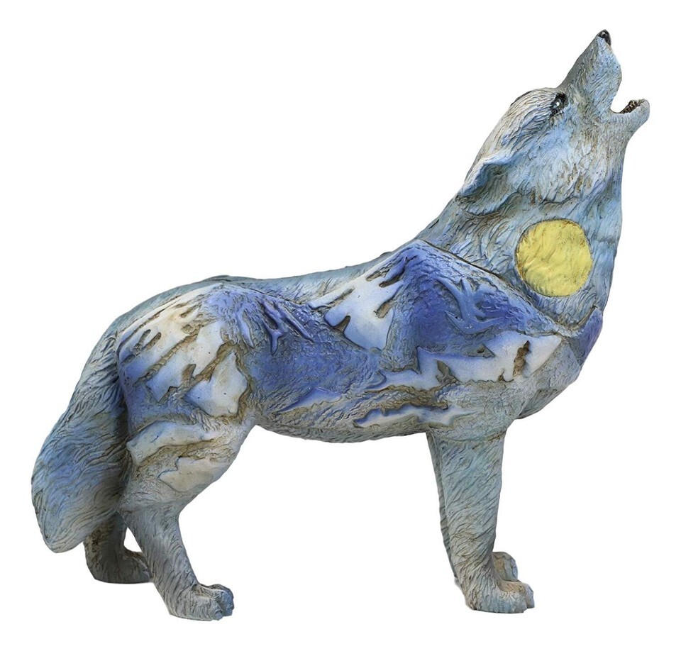 Moon Mountain Native Tribal Howling Wolf Totem Spirit Figurine Collection 6"L