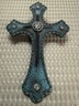 7"Tall Rustic Western Faux Distressed Wood Wall Cross With Turquoise Pebble Gems