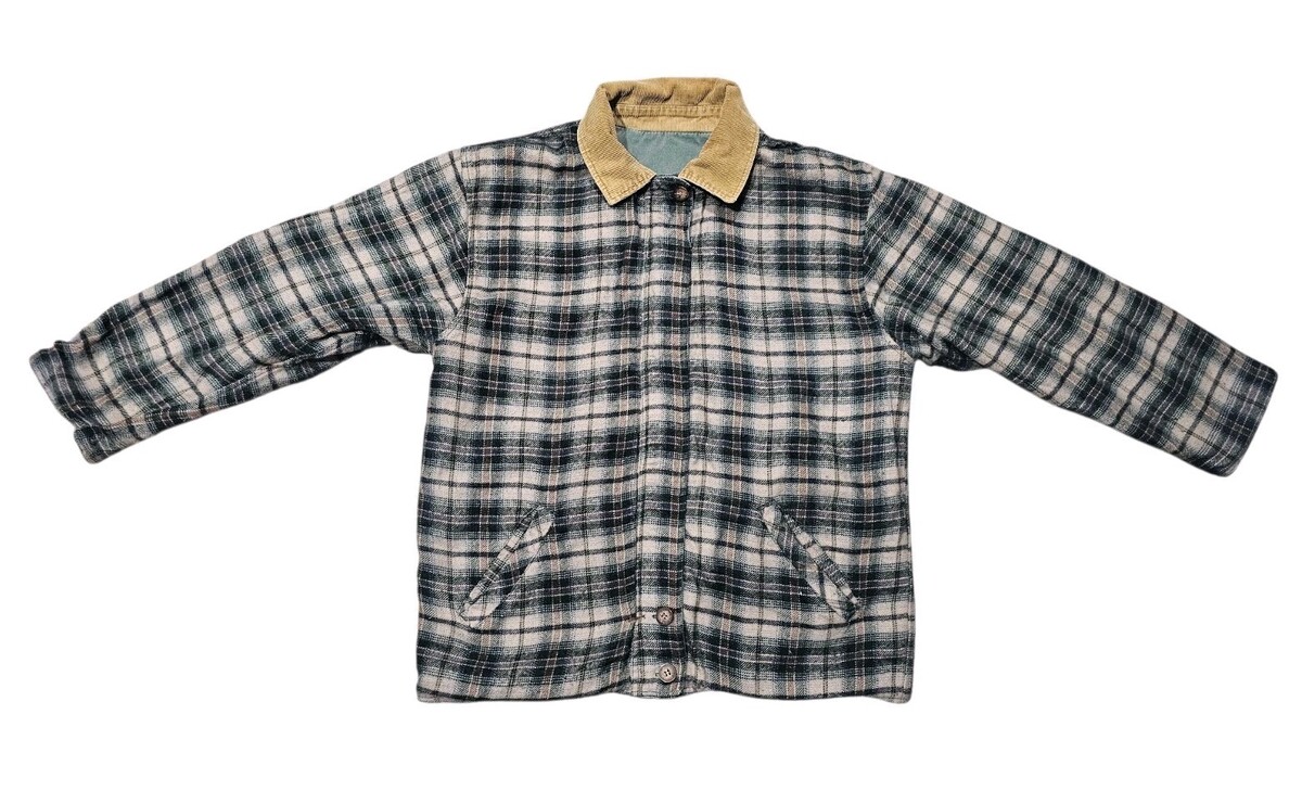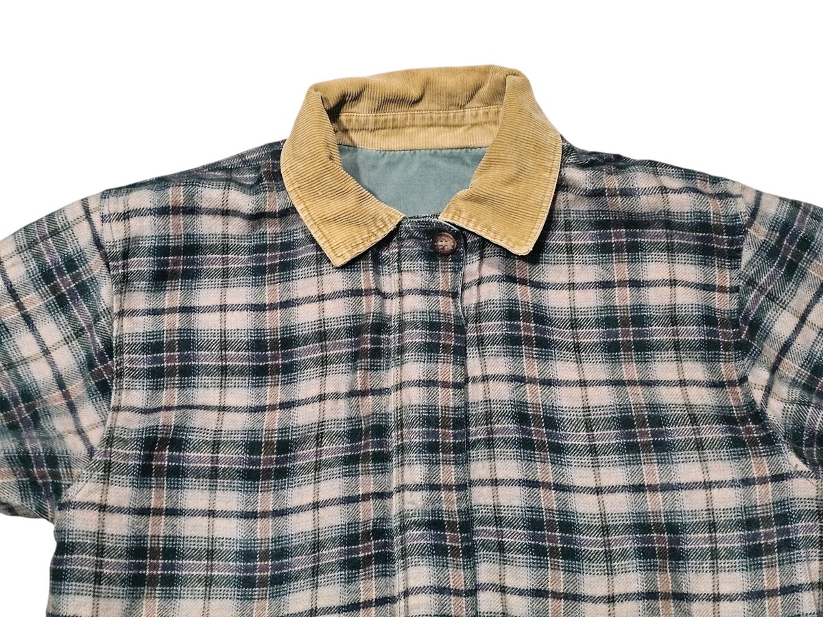 Vintage Arizona Jeans Barn Jacket Green Plaid Flannel Canvas Coat REVERSIBLE M