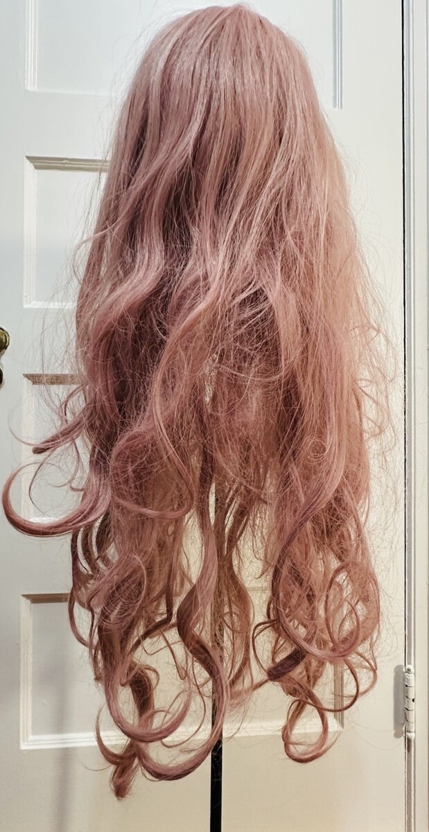 pink cosplay wig, women?s costume wig, long curly wig, synthetic cosplay hair, Halloween wig, drag wig, princess wig, cosplay accessory, long pink wig, women?s fashion wig, curly hair wig, costume wig, cosplay long wig, pink drag wig, curly princess wig