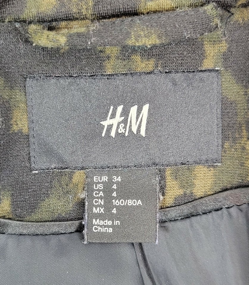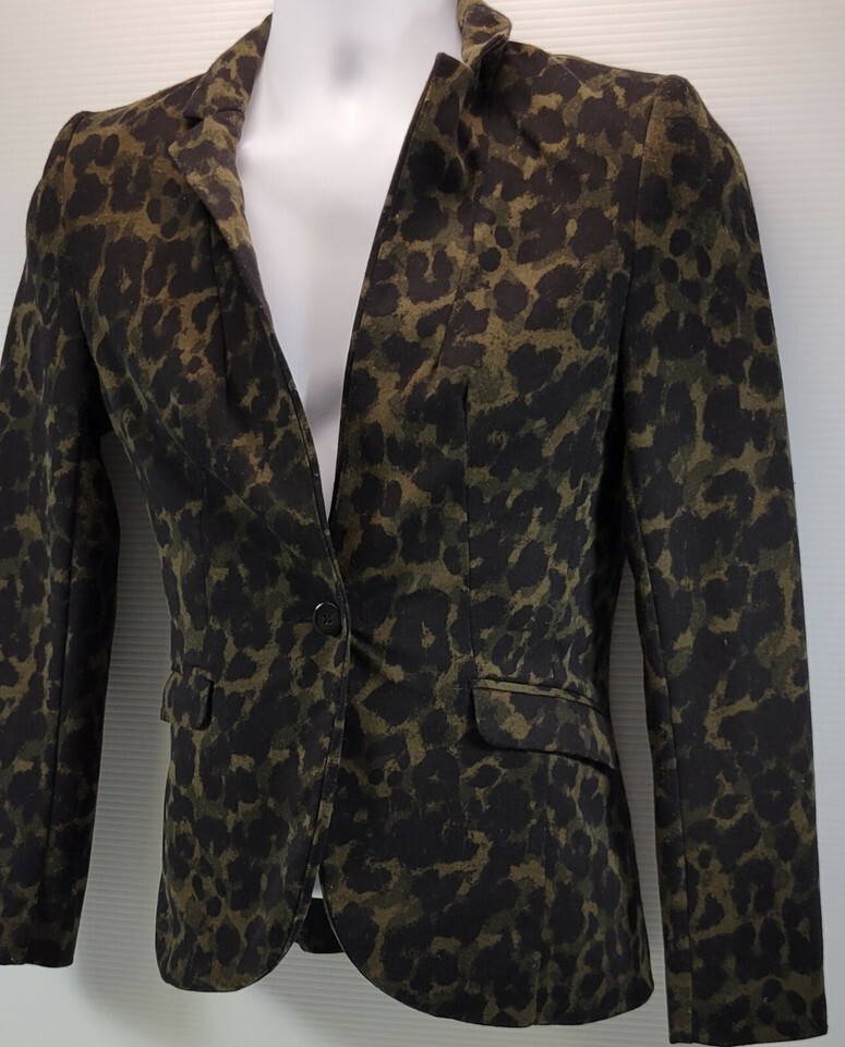 MM) Women's H&M Cheetah Leopard Print Sports Coat Size 4 Green Tint