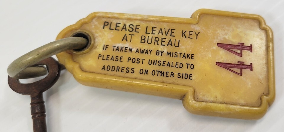 *B42) Vintage Grand Hotel Middlesbrough England Skeleton Room #44 Bakelight Fob