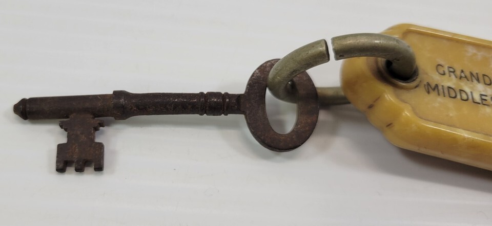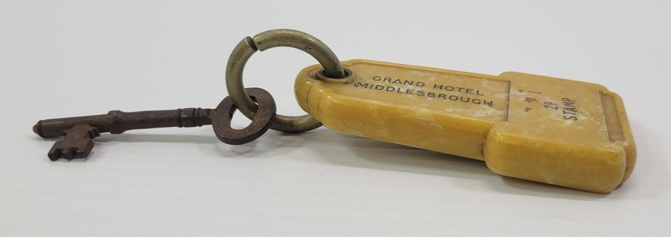 Vintage Grand Hotel Middlesbrough Skeleton Room Key with Bakelight Fob