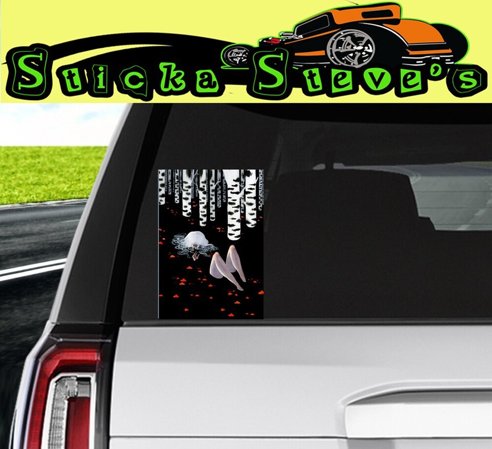 Lady of the Night Heart Cool Roses Birch Tree Black Dark Vinyl Sticker Decal