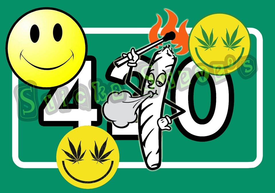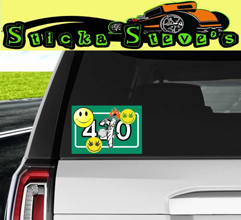 420 Bud Green Weed Three Face High Spliff Joint Vinyl Sticker Decal. Very Cool