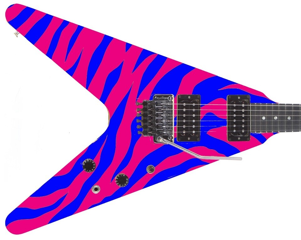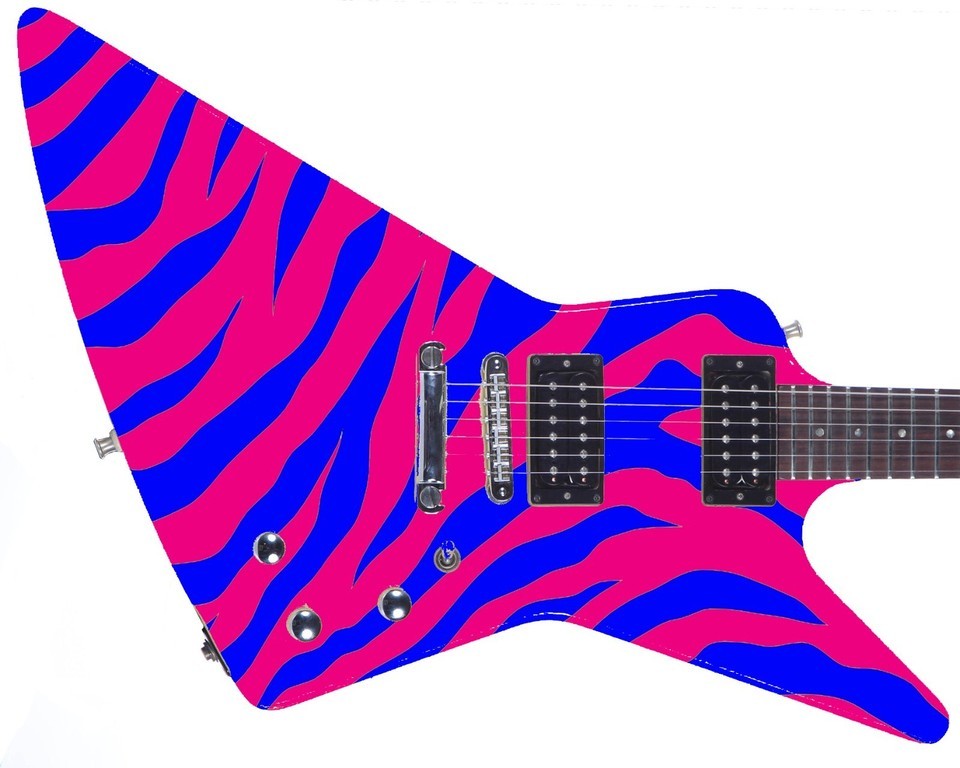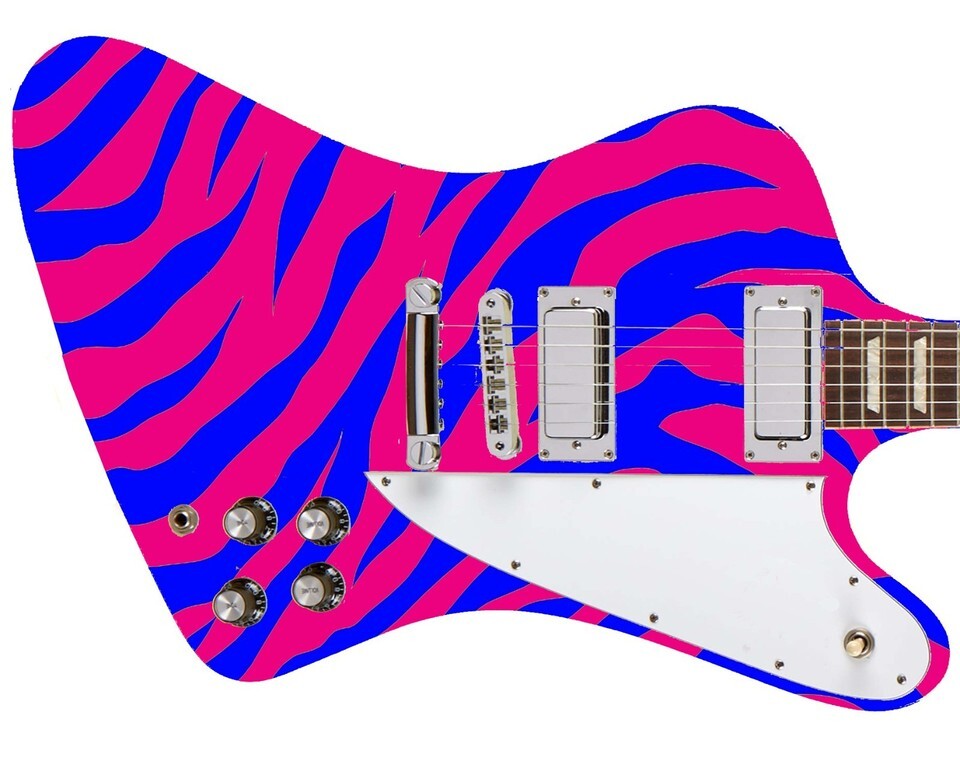 Guitar Skin Wrap Axe Reface Oversized Hot Pink Electric Blue Tiger Stripes 1230