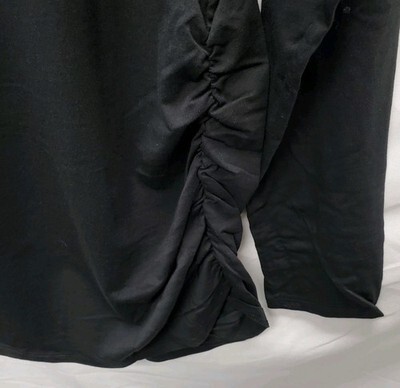 The Ingrid Isabel Maternity XL Long Sleeve Turtleneck T-Shirt is a black, solid-colored top made from a blend of spandex and cotton. It features a turtleneck neckline, long sleeves, and gathered sides for a comfortable fit. This pullover shirt is machine washable, lightweight, and tagless for added comfort. Designed for women, this t-shirt is perfect for moms-to-be, with a theme that celebrates the soon-to-be-mother status. The brand Isabel Maternity by Ingrid Isabel offers a regular fit for a stylish and cozy look during pregnancy.