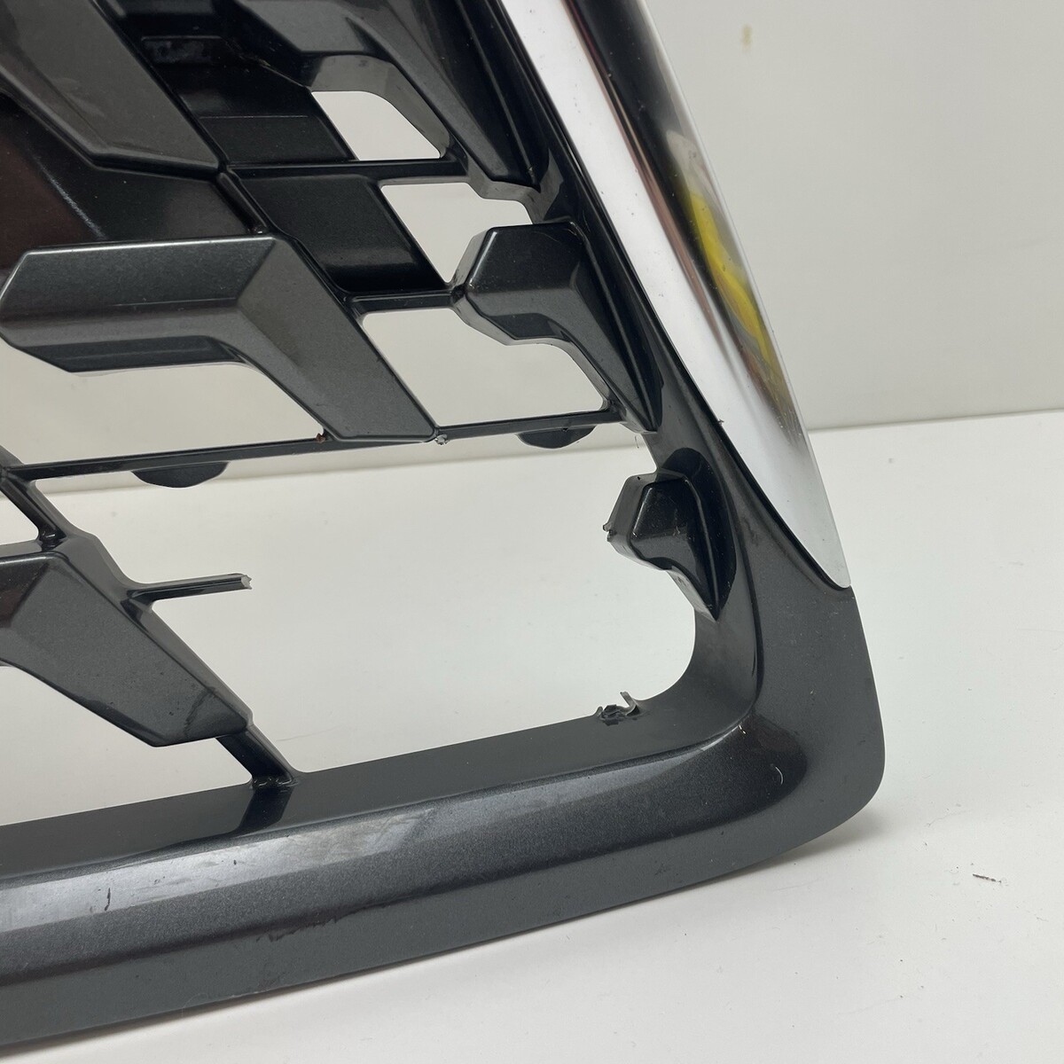 Condition is used, upper grill is in good condition with no breaks. lower grill is broken but still usable. Has part of the grille missing in the lower left corner, and has a couple broken tabs. You can use as is or the lower grill is able to be removed and source a replacement. Please see all photos for complete details.