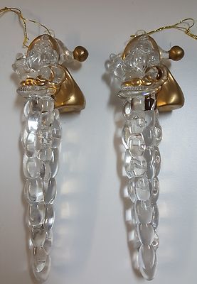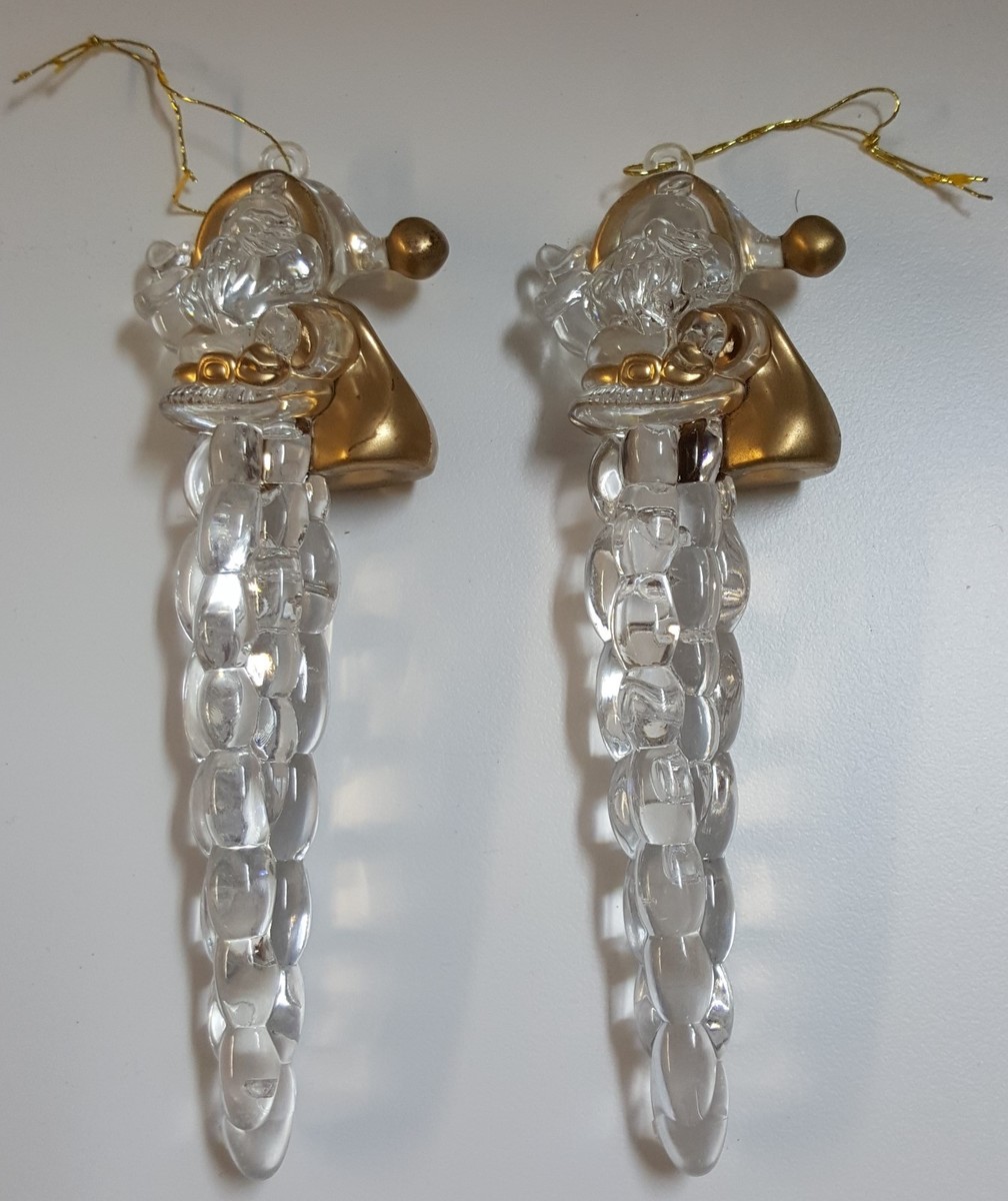VV) Set Plastic Santa Claus Icicle Christmas Tree Holiday Ornaments Clear Gold