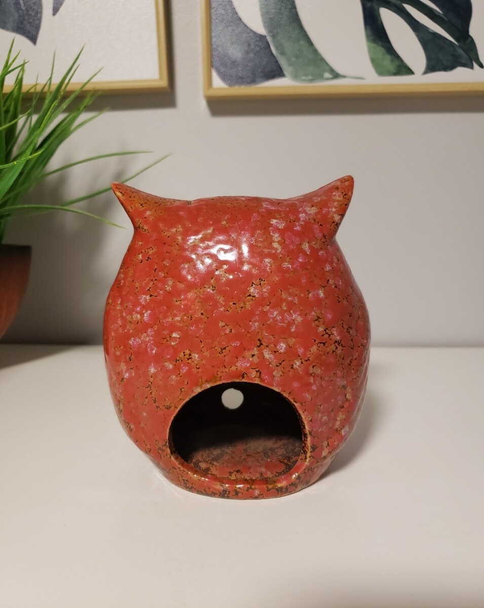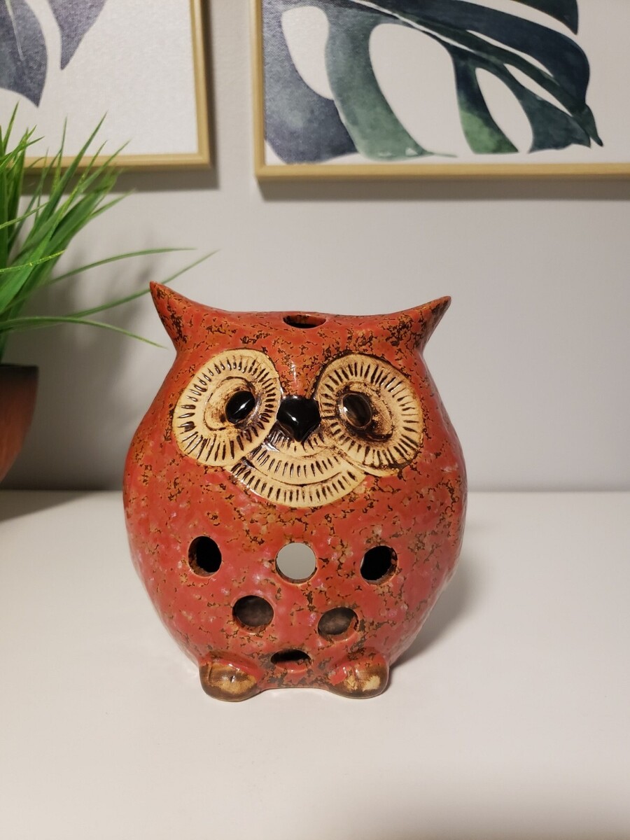 VTG hand crafted, hand painted ceramic owl tealight/candle holder
