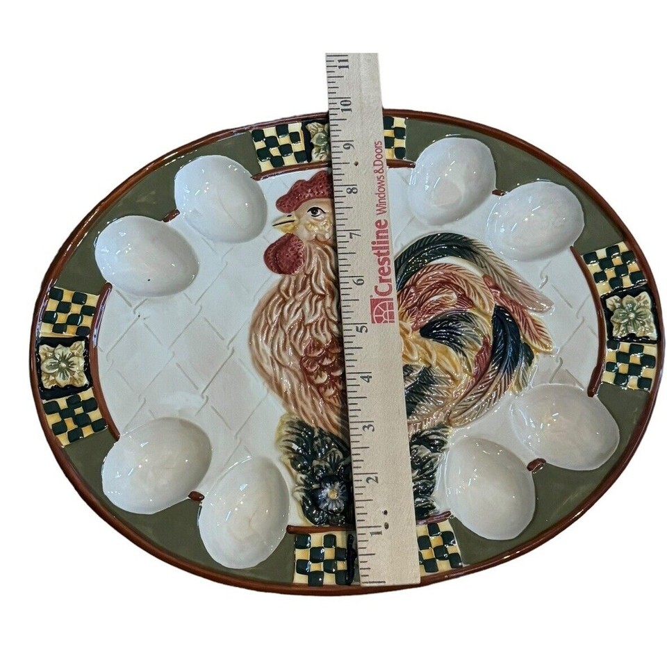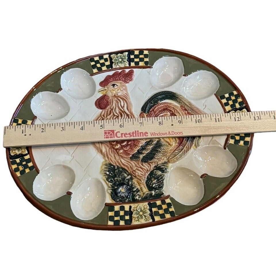 Large Deviled Egg Plater Bella Casa By Ganz VTG Rooster Hen Chicken Kitchenware