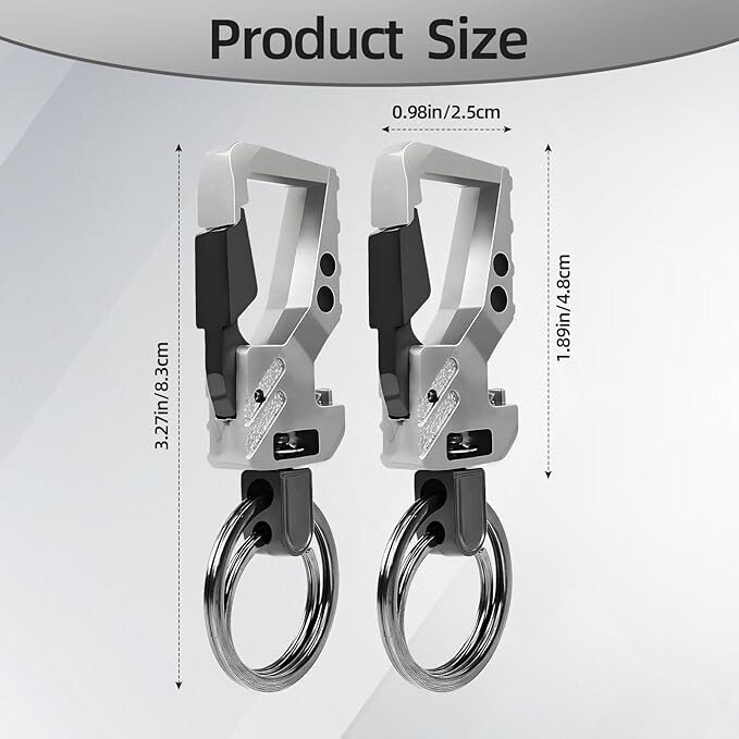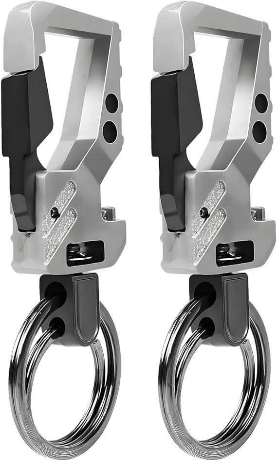 2 Pack Heavy Duty Metal Keychains Opener Clip Car Key Chains with 2 Black Grey
