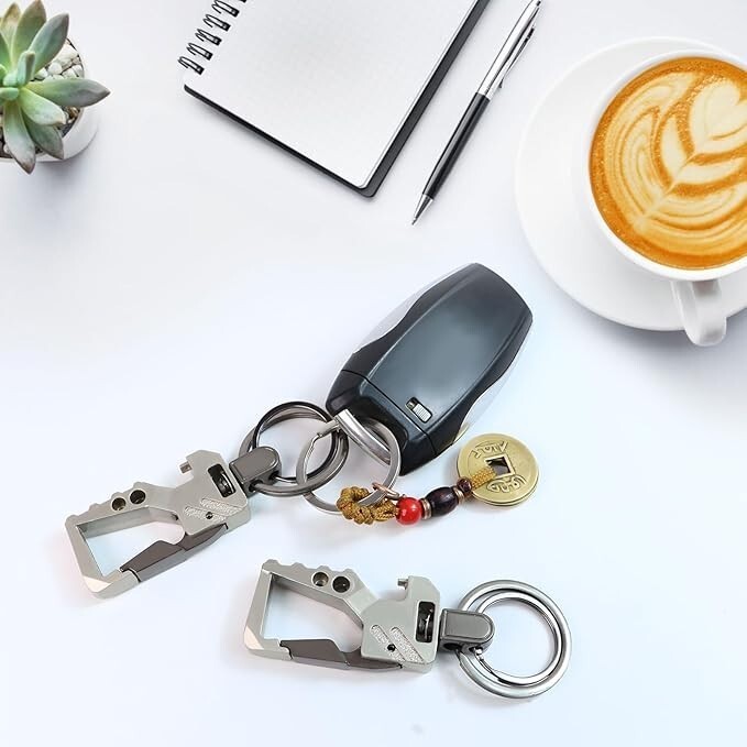 : We will provide you with a two-piece carabiner keychain suitable for men and women, which supports replacement or sharing. Whether it is daily key carrying, dealing with emergencies, or opening bottles and prying cans, you can feel the efficiency and comfort brought to you.