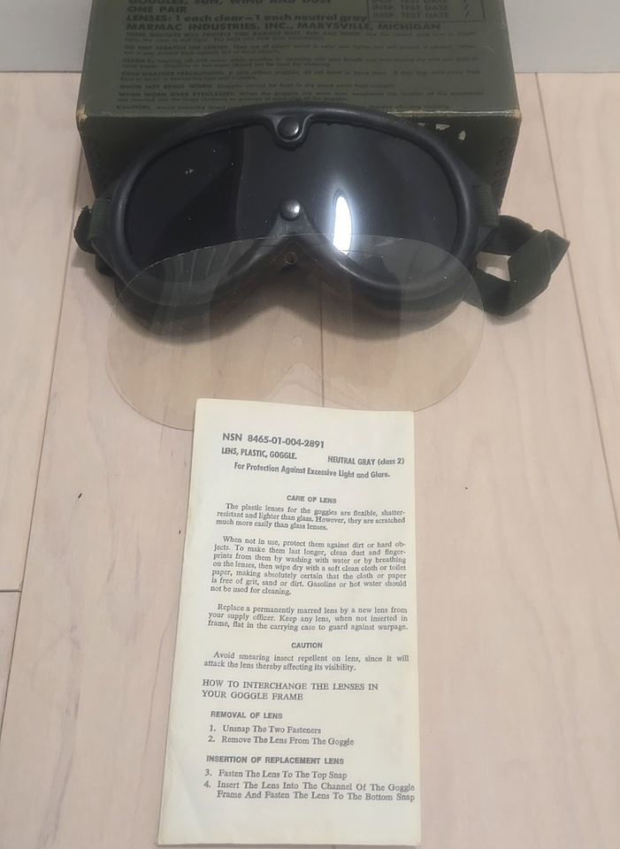 Marmac Military issue Goggles, Sun, Wind, and Dust NSN 8465-01-004-2893 NOS