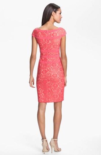 Adrianna Papell Lace Sheath Dress Sz 4 Pink Coral