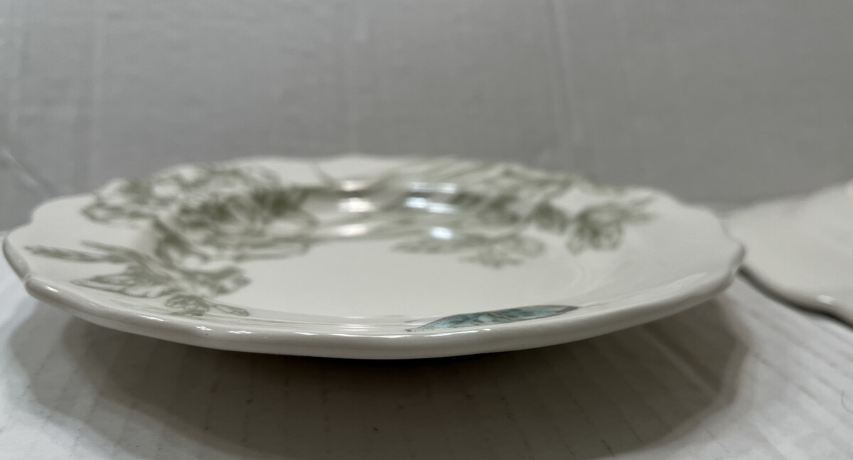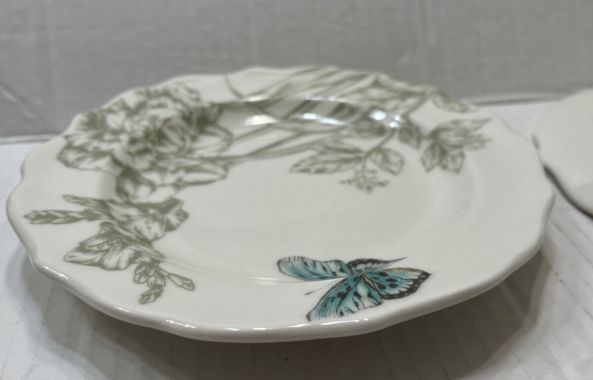 222 Fifth Set of 3 Spring Dessert Appetizer Bread Plates Butterflies Floral 6.5"