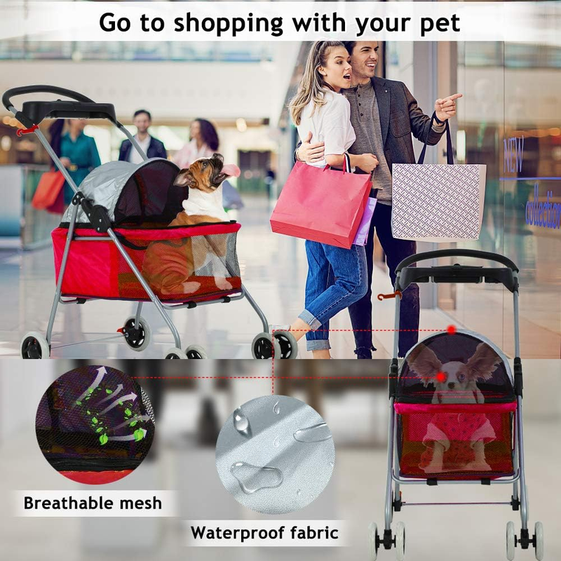 Cat Dog Stroller for Small & Medium Dogs up to 35Lbs Kitten Doggie Cage Waterpr