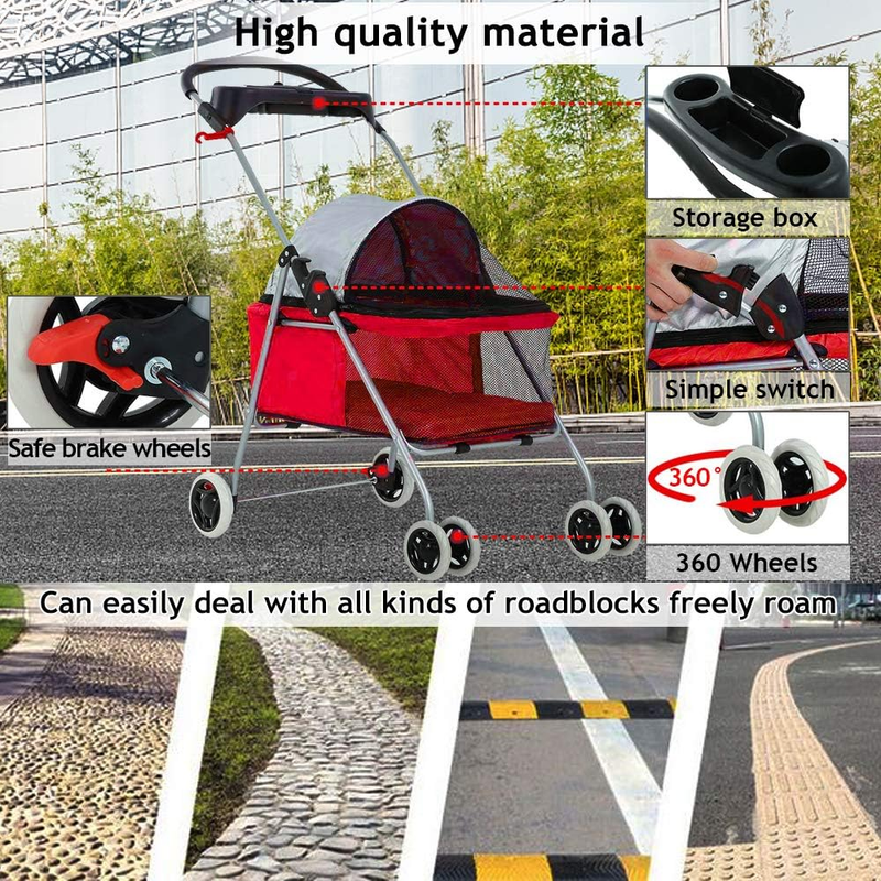 ??HUMANIZED DESIGN?The pet stroller have a wonderful cup holder for you and a tray holder for some treats for your pet. As well as the smooth handle can save your physical strength, makes you easier and faster to push the dog stroller. You can use the cat stroller go to shopping/walking/hiking/tourism with your pet. Dog stroller cat stroller pet stroller