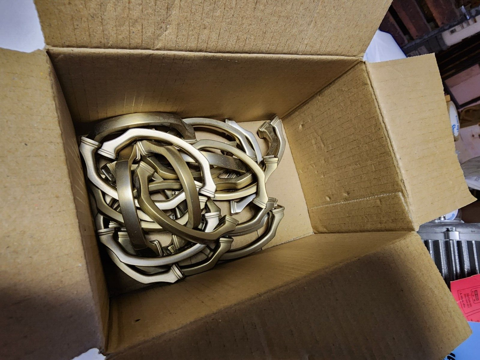 Pair of Amerock Revitalize BP55343CZ Champagne Bronze Drawer Pulls 3in Hole Centers. These were packed in bulk boxes and are surplus from a furniture manufacturer.