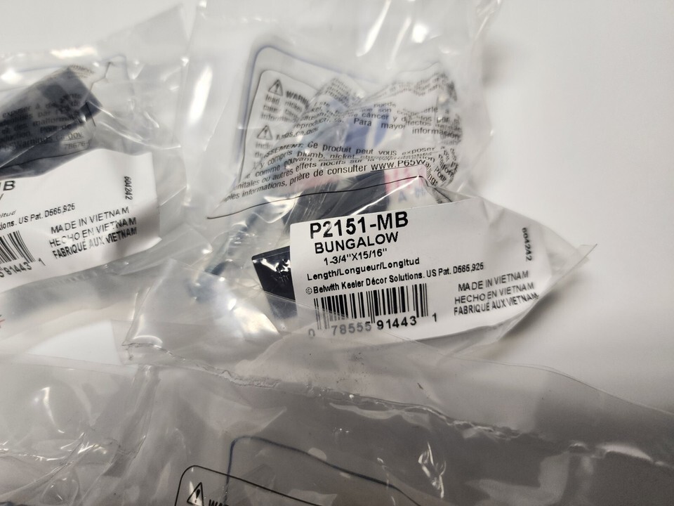 9 pcs. of Hickory Hardware P2151-MB drawer pulls / knobs they have a Matte Black finish. This is an open box of 10 that has one missing they are surplus from a furniture manufacturer.