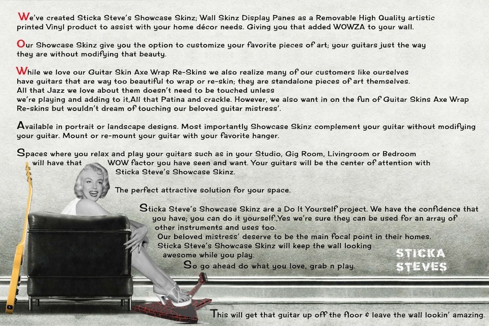 We have created and customized our Showcase Skinz with a focus on guitars.